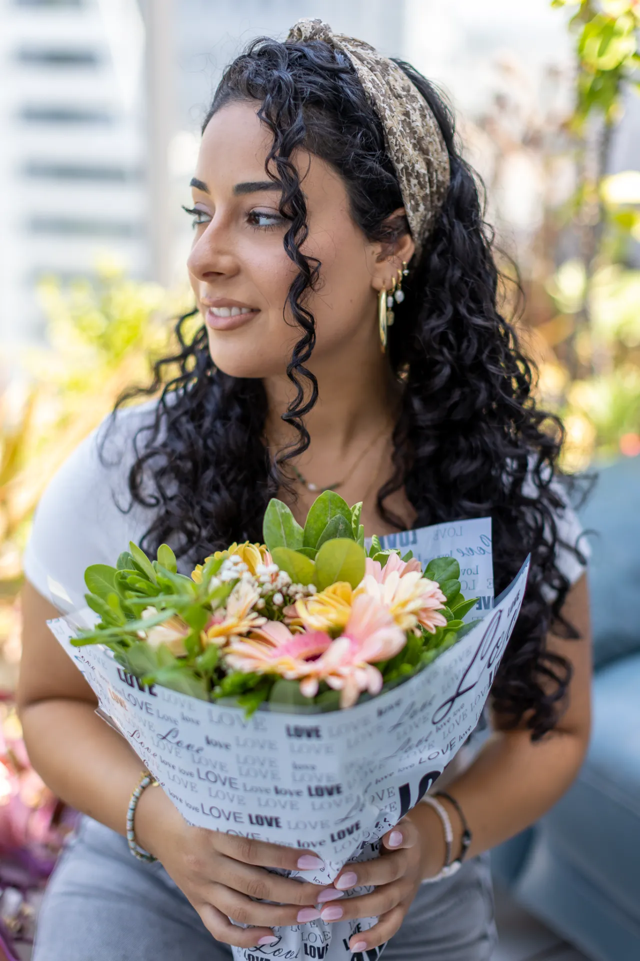 הבד משלב בתוכו הדפס פרחים קטן וסולידי, שמוסיף עניין ויופי, והוא מושלם למראה קליל. זו המטפחת המושלמת להשלמת כל לוק.