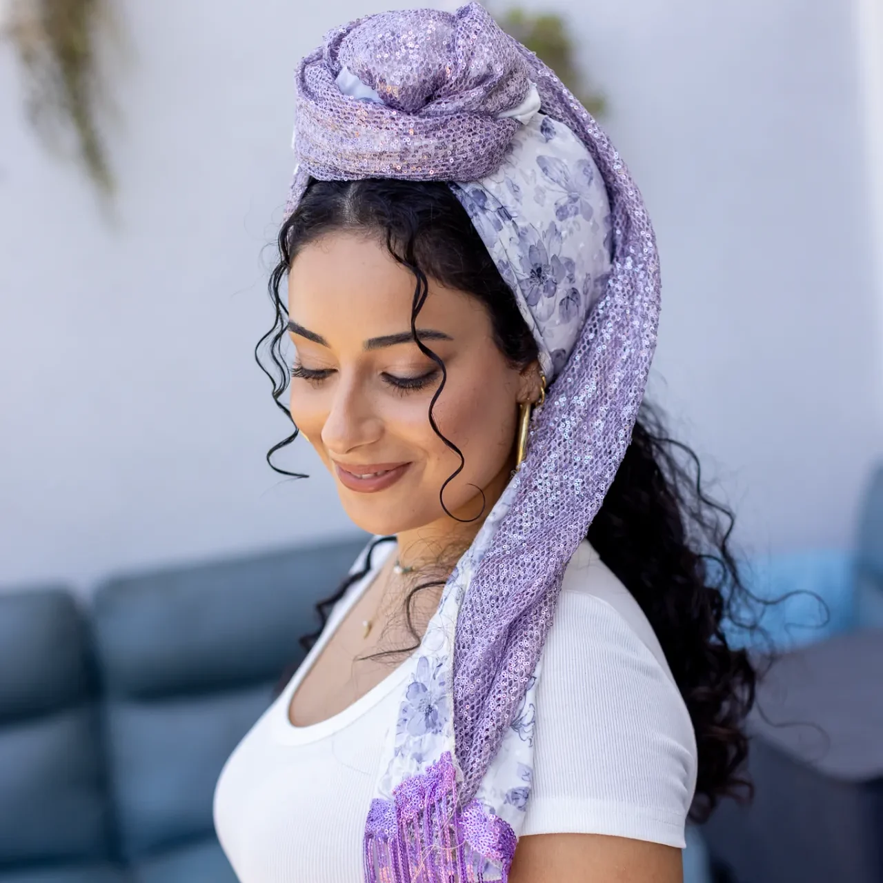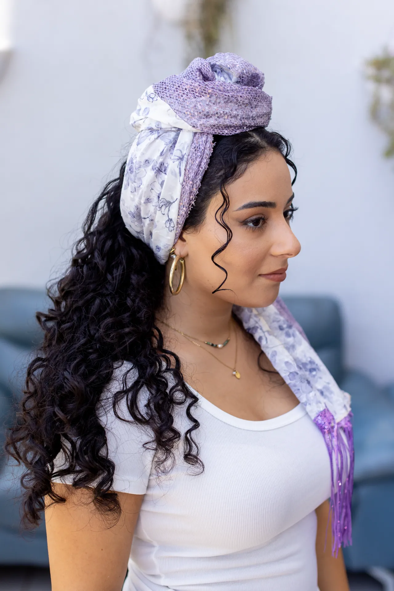 מטפחת מעוצבת בגווני סגול חלומי עם פרינט פרחוני,
